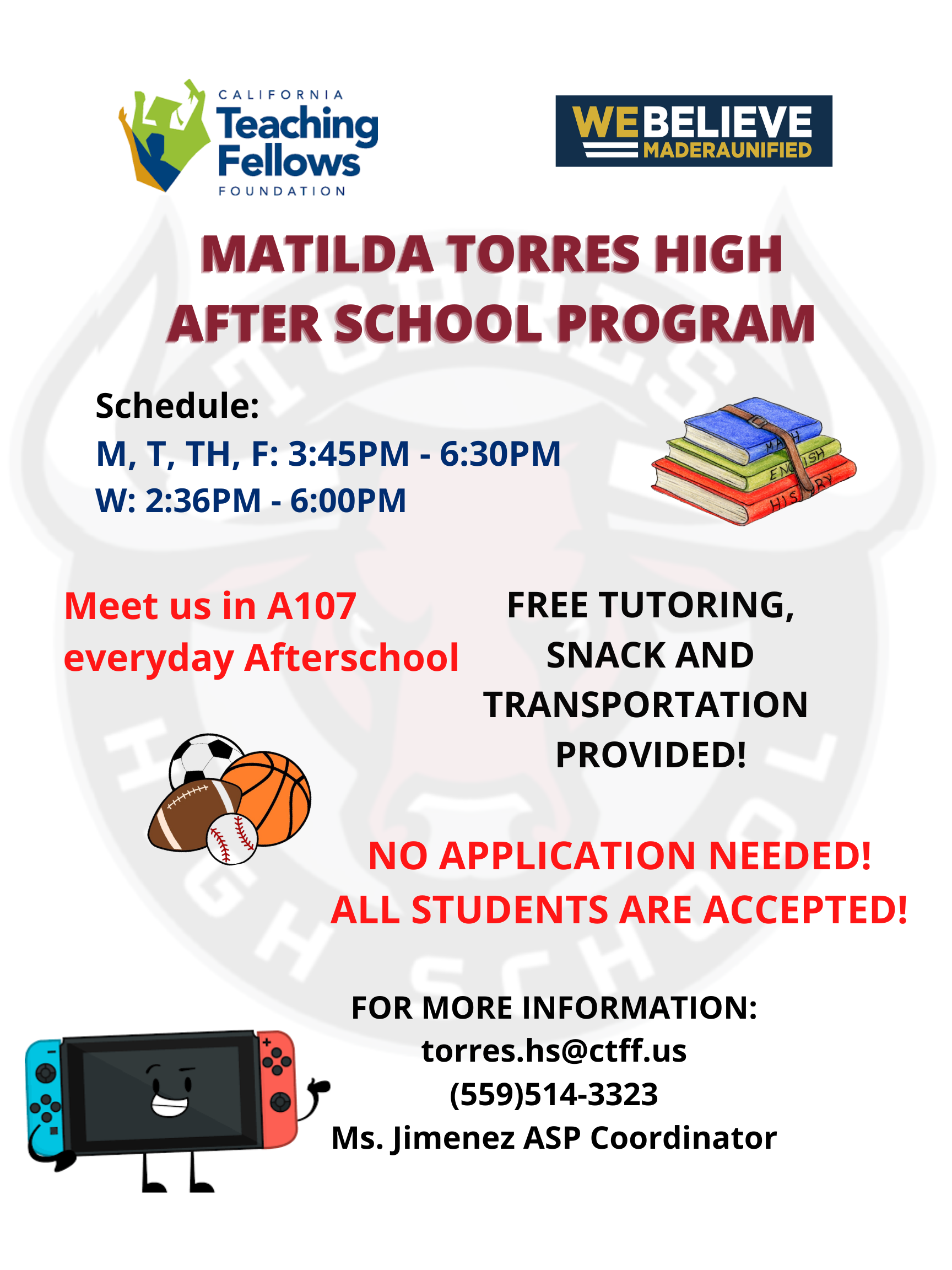 Monday, Tuesday, Thursday & Friday3:45 PM – 6:30 PM